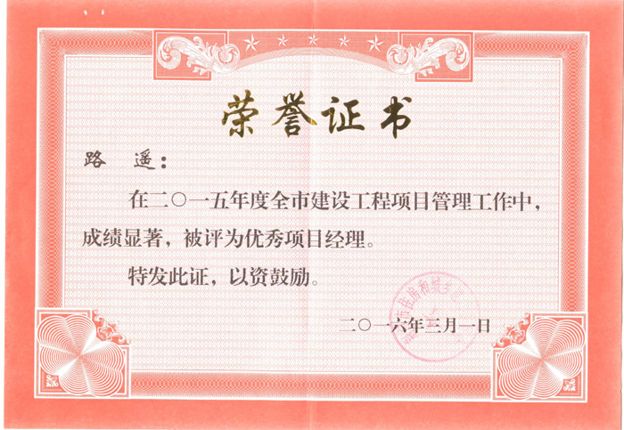 2016年3月路遙被評(píng)為優(yōu)秀項(xiàng)目