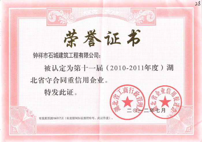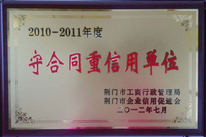 2012年7月被認(rèn)定為荊門(mén)市守合同重信用企業(yè)