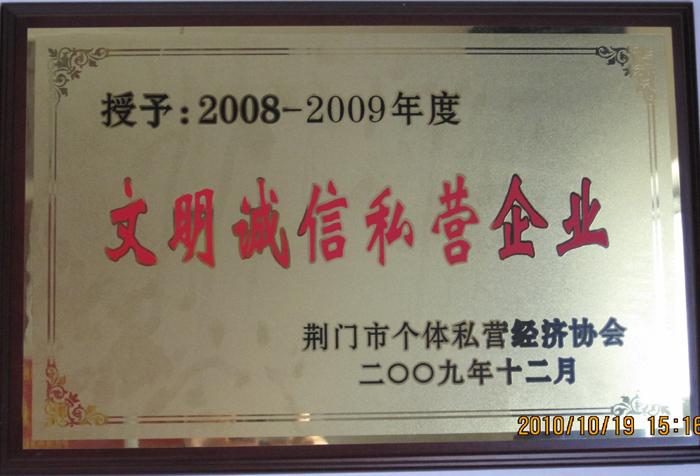 2007年7月榮獲2008-2009年度荊門市“守合同重信用”單位