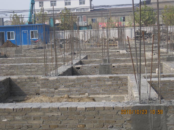工程概況 本工程為鐘祥市郢中街道辦事處王家灣社區(qū)房屋拆遷安置點(diǎn)住宅小區(qū)工程二標(biāo)段,本標(biāo)段共8棟,其中住宅樓1#為3棟,磚混結(jié)構(gòu)六層;住宅樓2#為3棟,住宅樓3#為2棟,一、二層為框架結(jié)構(gòu),三至六層為磚混結(jié)構(gòu)。 一、基礎(chǔ)工程結(jié)構(gòu)概況 1、住宅樓1#基礎(chǔ)采用采用預(yù)應(yīng)力高強(qiáng)度混凝土(PHC)管樁,樁長(zhǎng)(從自然地面起)18-21m,樁端進(jìn)入第6層砂礫夾卵石大于1.0m,樁徑為300mm。 2、住宅樓2#、3#基礎(chǔ)采用預(yù)應(yīng)力高強(qiáng)度混凝土(PHC)管樁,管樁規(guī)格PHC-A300-70,樁長(zhǎng)(從自然地面起)18-21m,樁端進(jìn)入砂礫夾卵石大于1.0m。 二、主體結(jié)構(gòu) 住宅樓1#為六層磚混結(jié)構(gòu),主體結(jié)構(gòu)混凝土強(qiáng)度等級(jí)均為C25,正負(fù)零以下采用MU20水泥標(biāo)準(zhǔn)磚,M10水泥砂漿砌筑,架空層采用MU15水泥多孔磚,M10混合砂漿砌筑。主體一至六層采用MU15水泥 多孔磚,M10水泥砂漿砌筑。 住宅樓2#、3#室內(nèi)外高差為15cm,底層混凝土強(qiáng)度等級(jí)為C30,二至六層為C20。2.18m以上為MU15水泥多孔磚,M10水泥砂漿砌筑,2.18m以下為MU20水泥標(biāo)準(zhǔn)磚,M10水泥砂漿砌筑。